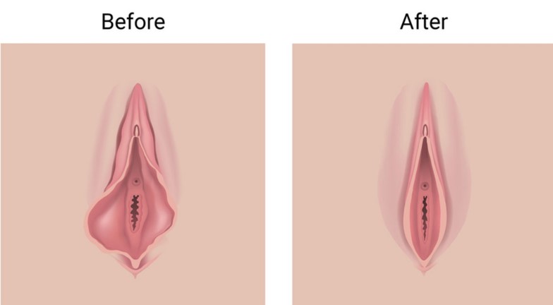 Việc cắt môi bé (thu hẹp môi bé, tạo hình môi bé) là một phẫu thuật an toàn, giúp loại bỏ lớp da thừa phì đại ở vùng kín, thu nhỏ kích thước của môi bé, tạo vẻ cân đối và trông thẩm mỹ hơn. Thủ thuật này được thực hiện trong khoảng 30 – 60 phút và hồi phục sau khoảng 7 – 10 ngày.