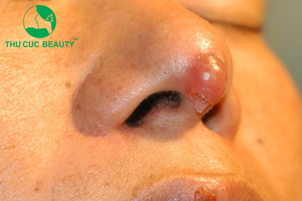 • Da mũi bị mỏng, bóng đỏ, có nguy cơ lộ sống.