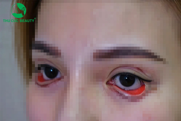 • Mắt không đều, mí mắt bị kéo xuống: Đây là một trong những biến chứng đáng lo ngại, xảy ra khi mí mắt dưới bị kéo xuống quá mức, khiến mắt bị lật mí, hở tròng trắng, gây khó chịu, khô mắt và mất thẩm mỹ. Nguyên nhân có thể do lấy quá nhiều da hoặc kỹ thuật khâu không đúng.